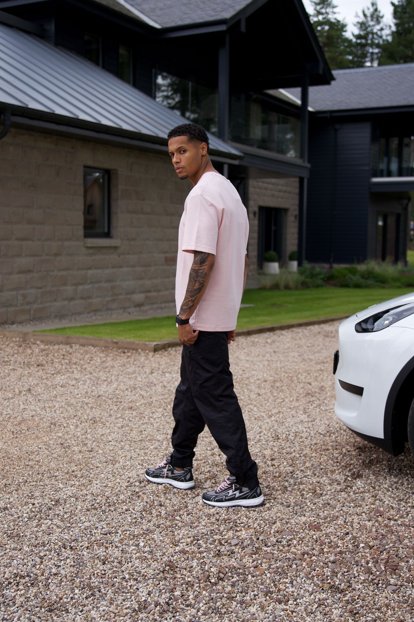 Presenting the Miami Pink Cosmo Runner, an embodiment of opulence and sophistication in contemporary running footwear. This pinnacle of elegance is meticulously crafted, featuring a pristine white canvas adorned with the finest silver lines.