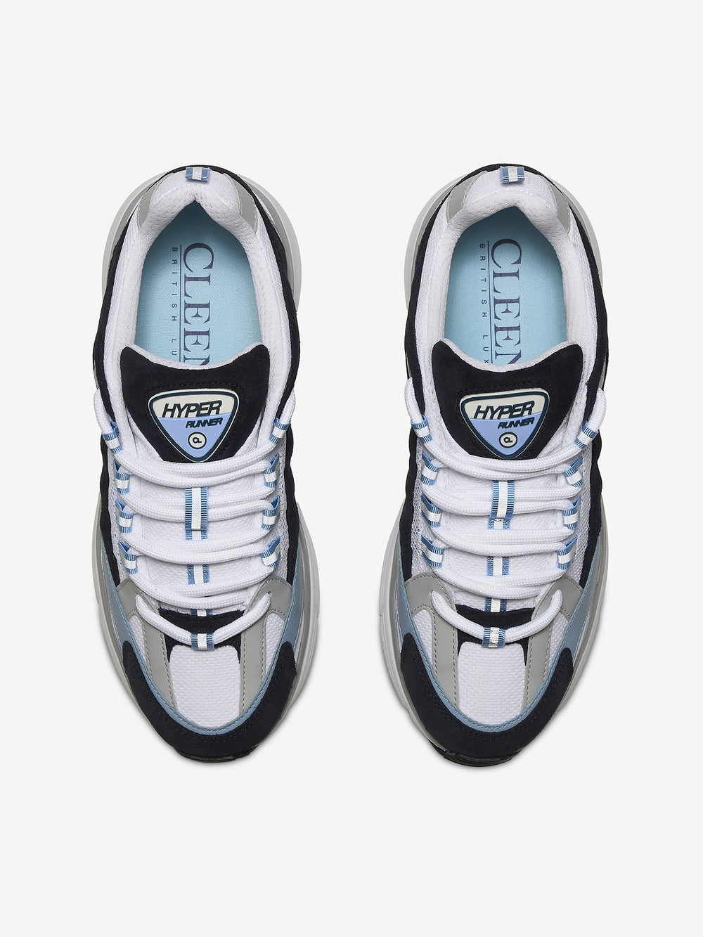 Combining an early 00s performance runner aesthetic with our unmistakable shape & profile, the Cleens Hyper Runner in the Pacific colourway is here. One of our most exciting releases to date, our take on the classic running shoe is essential to your runner rotation.