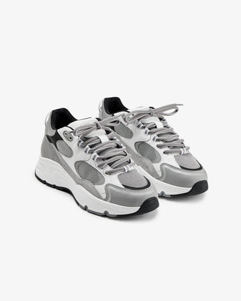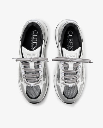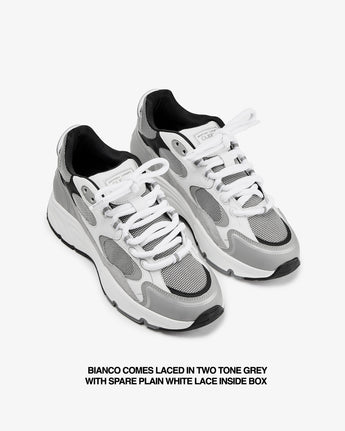 Introducing the Pulse Runner Bianco, our most luxurious yet effortlessly wearable trainer to date. Crafted from a perfect blend of premium white & grey Italian leathers and ballistic nylon, it features 3M reflective webbing that add a tech-inspired touch. This silhouette showcases our classic shape with striking two-toned laces, elevating the design to new heights.