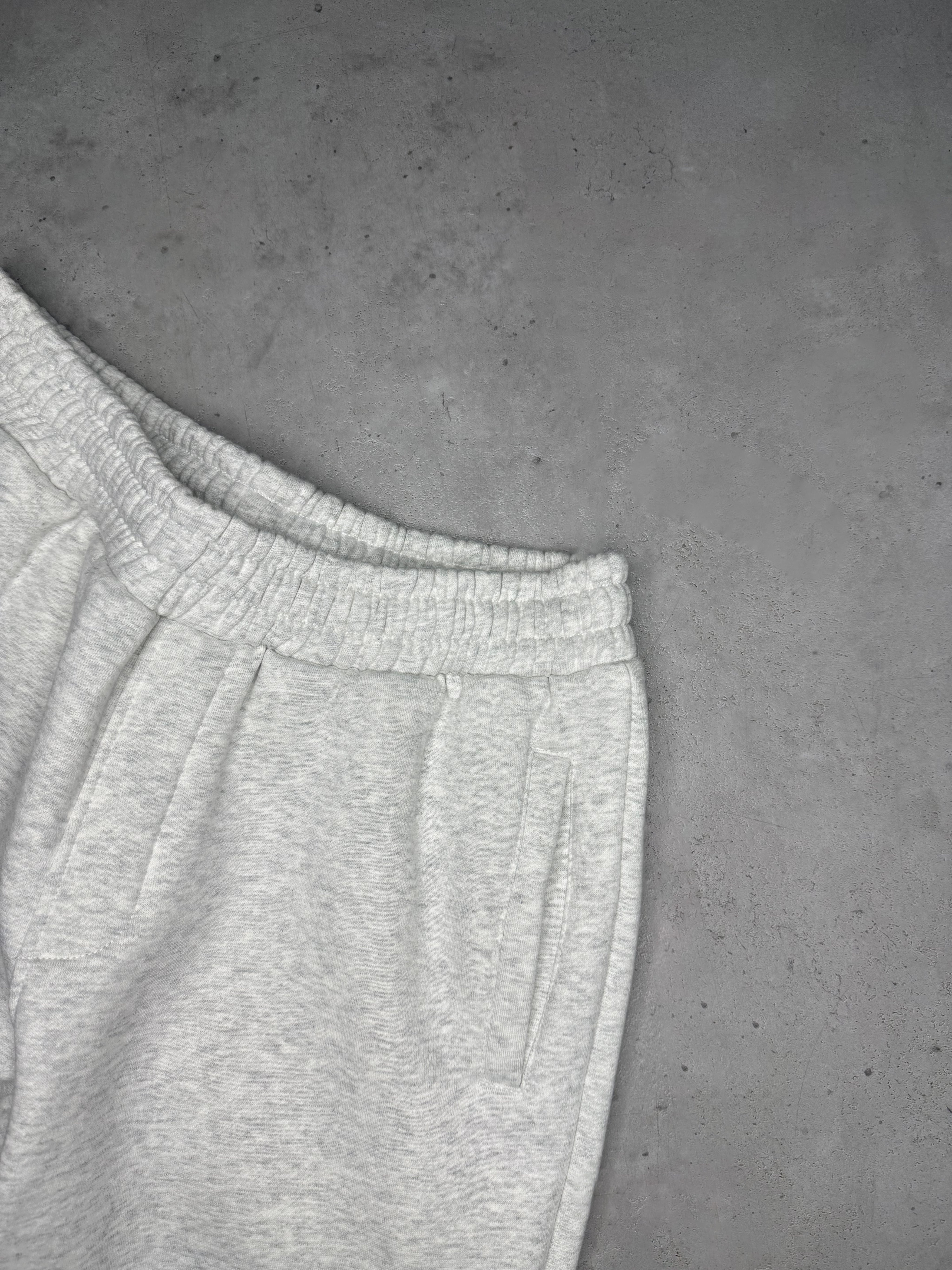 A light marl straight leg jogger offering elevated comfort, heavyweight feel and a timeless neutral tone.