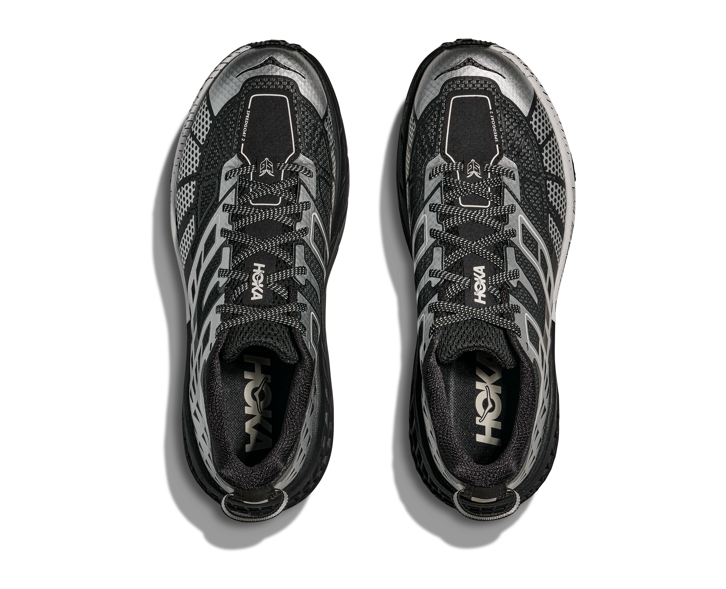 HOKA Speedgoat 2 in Black/Silver is built for trail domination, combining aggressive grip with responsive cushioning. Featuring a rugged outsole, protective upper and stable ride, it delivers confidence and comfort across technical terrain and long off-road miles.