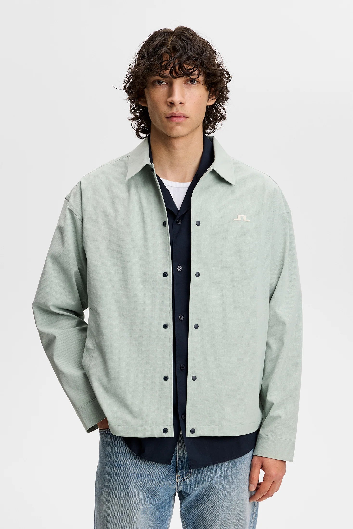 The Dex Coach Overshirt is cut from lightweight stretch fabric treated for water resistance. With its press-button front, adjustable hem and cuffs and minimalist branding, it’s practical yet sleek. Perfect for transitional days, it layers easily over shirts or tees, making it a go-to for modern urban dressing.