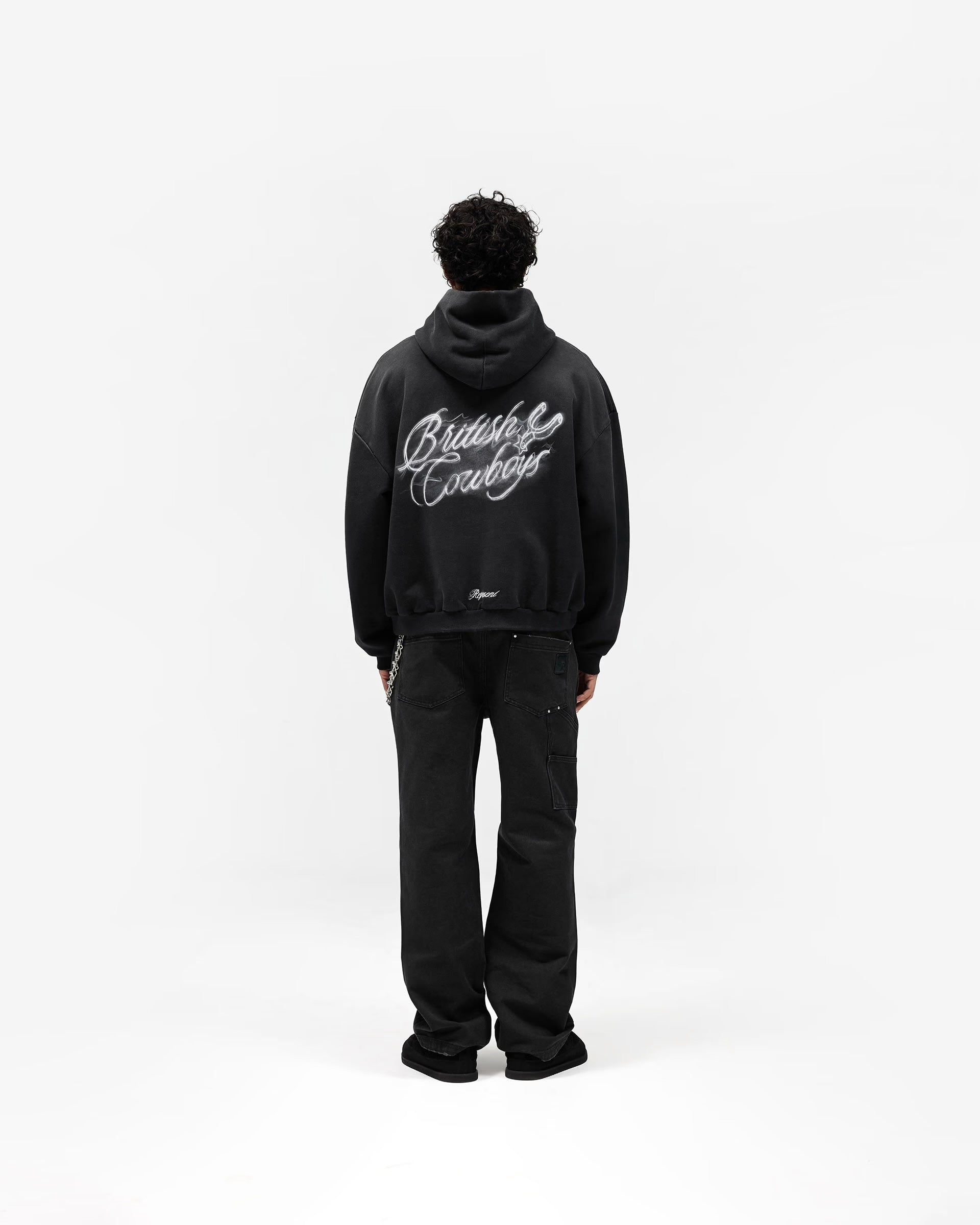Introducing the British Cowboys Hoodie in Stained Black, a heavyweight boxy fit hoodie constructed from premium cotton jersey with a washed, vintage finish. Built to reflect the worn-in character central to the Dream On collection, this piece balances bold graphics with authentic surface distressing.