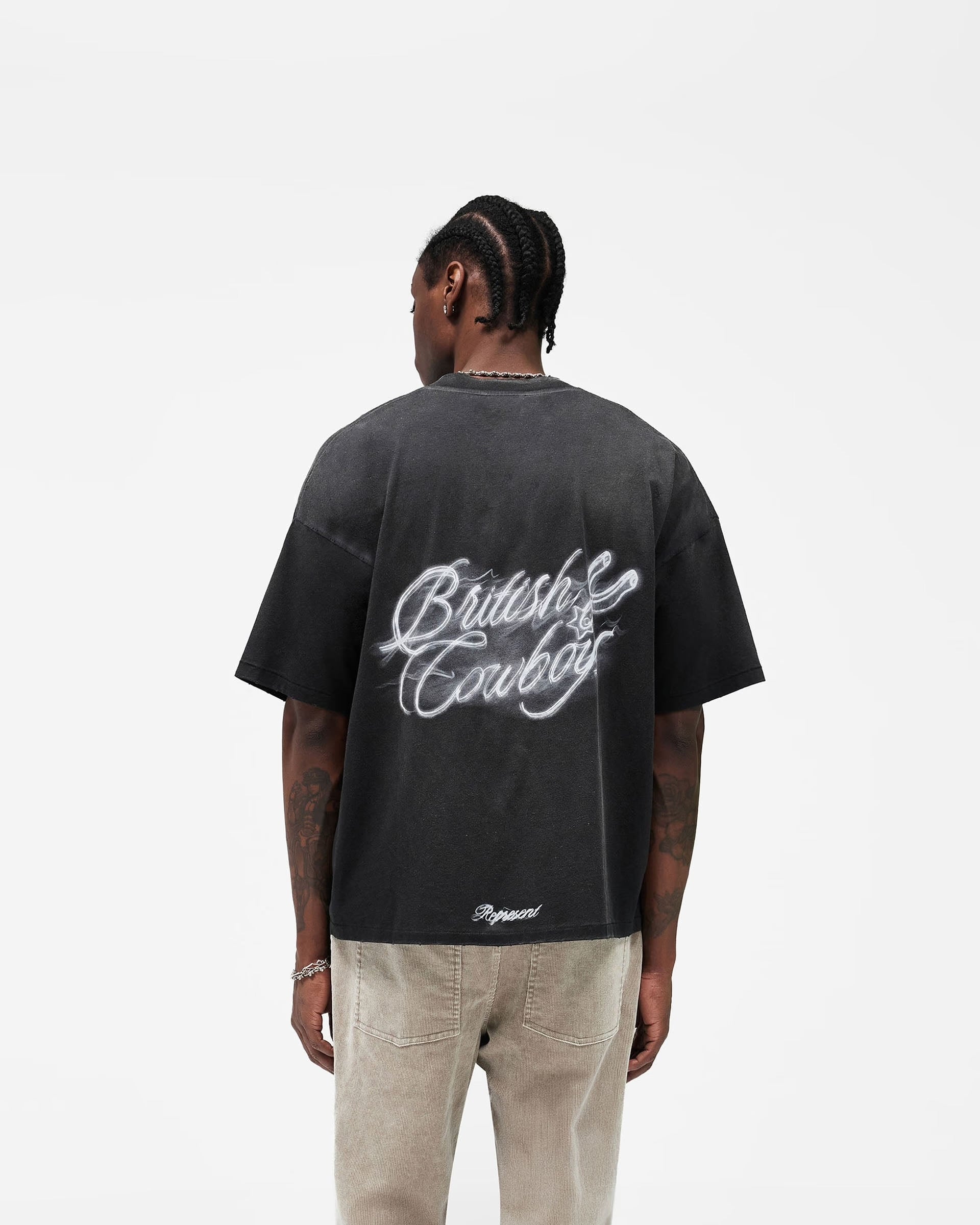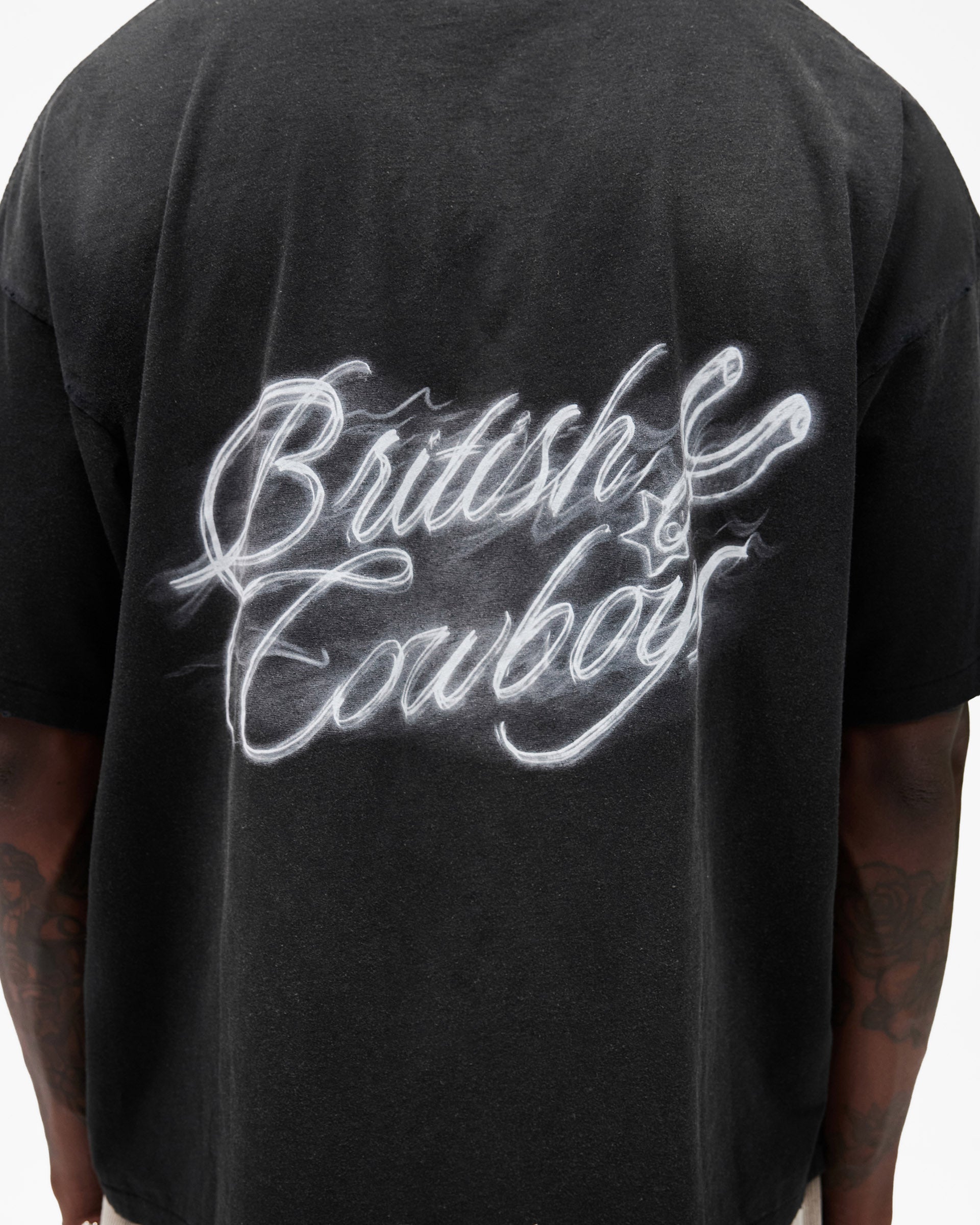 Introducing the British Cowboys T-Shirt in Stained Black, a boxy silhouette crafted from a lightweight cotton and hemp blend with a washed vintage finish. Designed to feel worn-in from the first wear, this t-shirt balances soft structure with raw detailing and expressive graphic treatment.