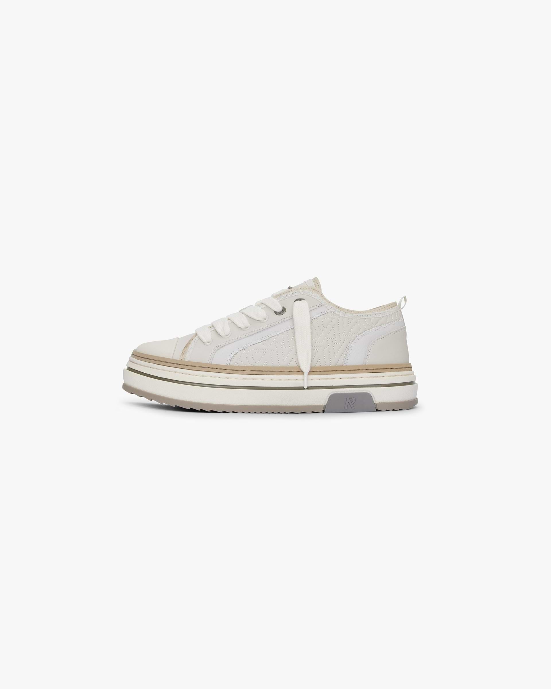 The HTN X Low in Vintage White is carried by our distinct chunky rubber outsole branded with the Represent logos, as well as our new rubber toe cap & rand for further elevation.