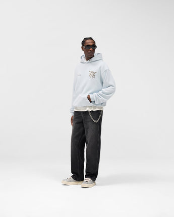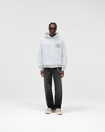 Crafted from luxury 480GSM cotton with a soft carbon finish, this hoodie balances structure with comfort. Designed to an oversized fit, it features a rib hem and cuffs for shape retention, and a kangaroo pocket finished with Represent’s signature metal bar.