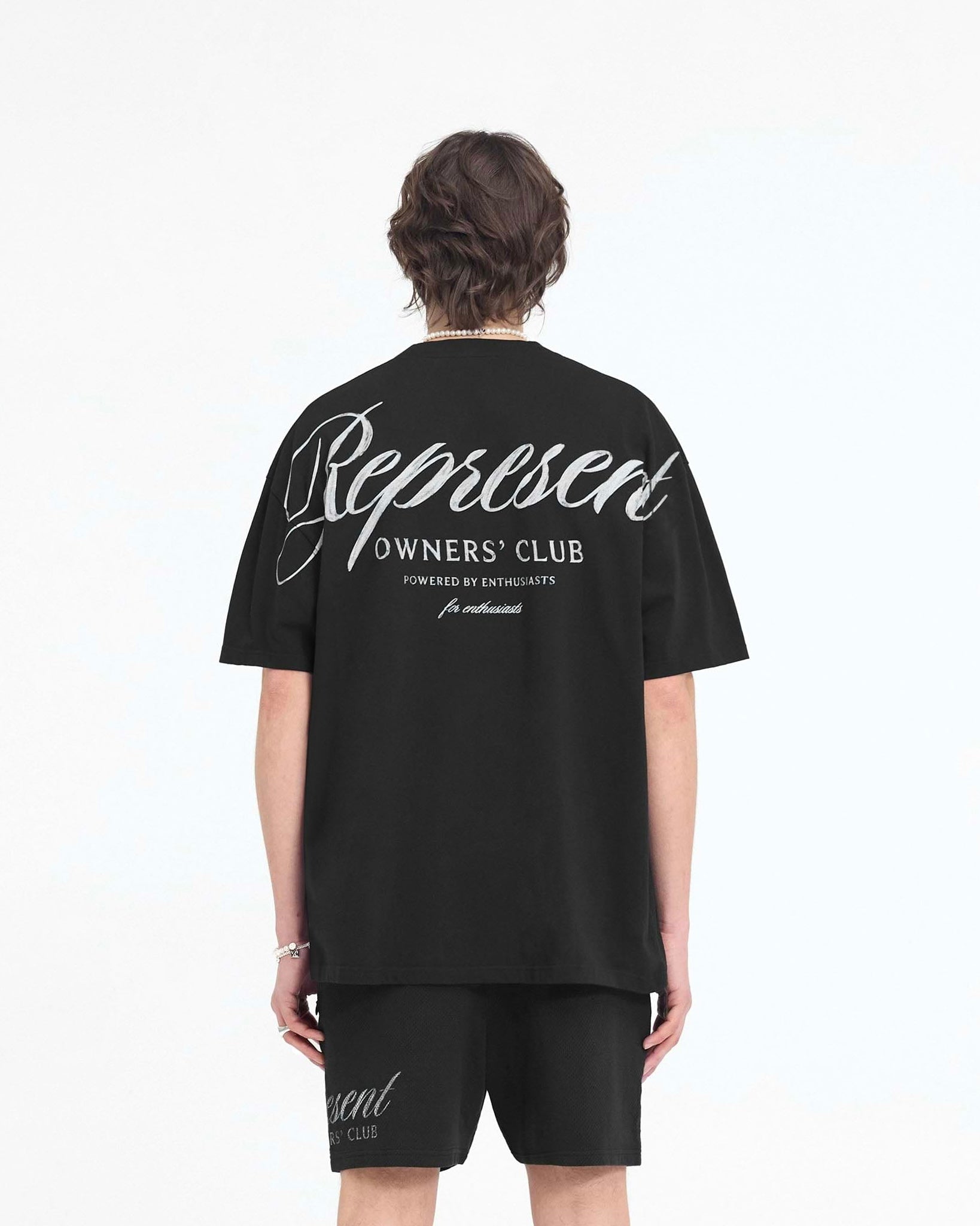 Introducing the latest evolution of the Represent Owners’ Club T-Shirt in Black, an oversized t-shirt crafted from luxury medium weight cotton. This t-shirt has a ribbed crewneck collar and a Represent metal bar to the hem.