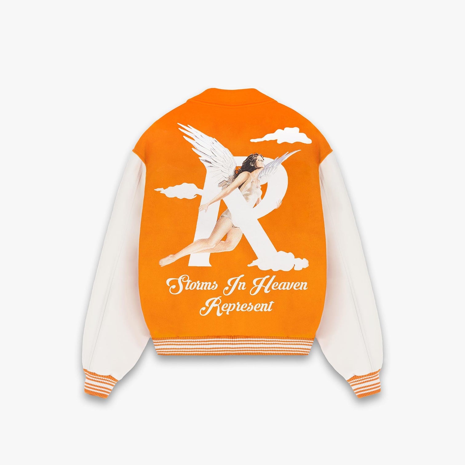Represent Storms In Heaven Varsity Jacket - Neon Orange